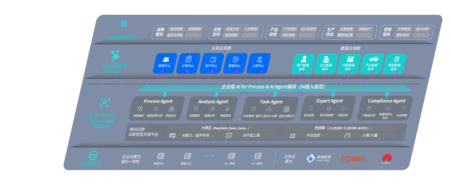 九鼎国际问学智车解决方案是一套基于AI技术的汽车行业智能化系统,,,覆盖从底层算力到顶层AI应用的全栈方案。。。方案由算力层、、、模型层和应用层组成:算力层,,,,方案支持多种一体机配置,,,,具备云端灵活部署、、多云适配以及动态优化计算资源的能力;模型层,,,,九鼎国际问学平台版提供了企业级AI应用一站式构建与管理平台,,,,支持基于后训练强化技术的汽车企业专属模型的训练、、、、评测和运营;应用层,,,九鼎国际问学DeepSeek版提供包括超级员工、、、智能招采、、、、智能营销、、智能客服、、、、AI for BI等一系列解决方案,,,,可助力汽车行业实现数字化转型,,,,让管理更智能、、、响应更敏捷。。。。