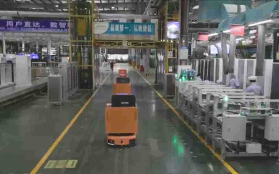 为车载冰箱物流配送打造的智能解决方案,,包含产中物流通过潜伏举升AMR搬运至线边,,产后成品物流智能仓储,,流程包含产中物流智能齐套入库,,线边安灯叫料AMR智能配送至线边,,,成品入库、、、出库,,,,通过无人堆高车机器人,,,智能仓储管理替代人工作业管理,,,实现更高存储、、、更高效率、、、、更具柔性化的解决方案。。。